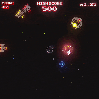A juicy arcade like bullet hell shooter around a black hole inspired by Galaga and Gravity Ace (by John Watson https://jotson.itch.io/gravity) This is my first game ever! This is a current prototype of the game originally made for VimJam 2020. Please leave some constructive feedback.